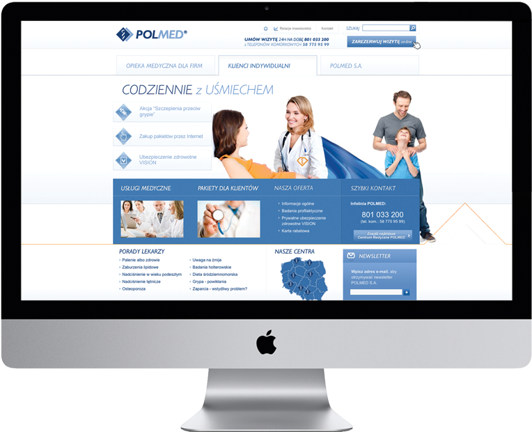 We created a unique brand image, distinguishing POLMED among its competitors (Enelmed., Luxmed, Medicover). We developed a symbol as a unique element making the brand image warmer.