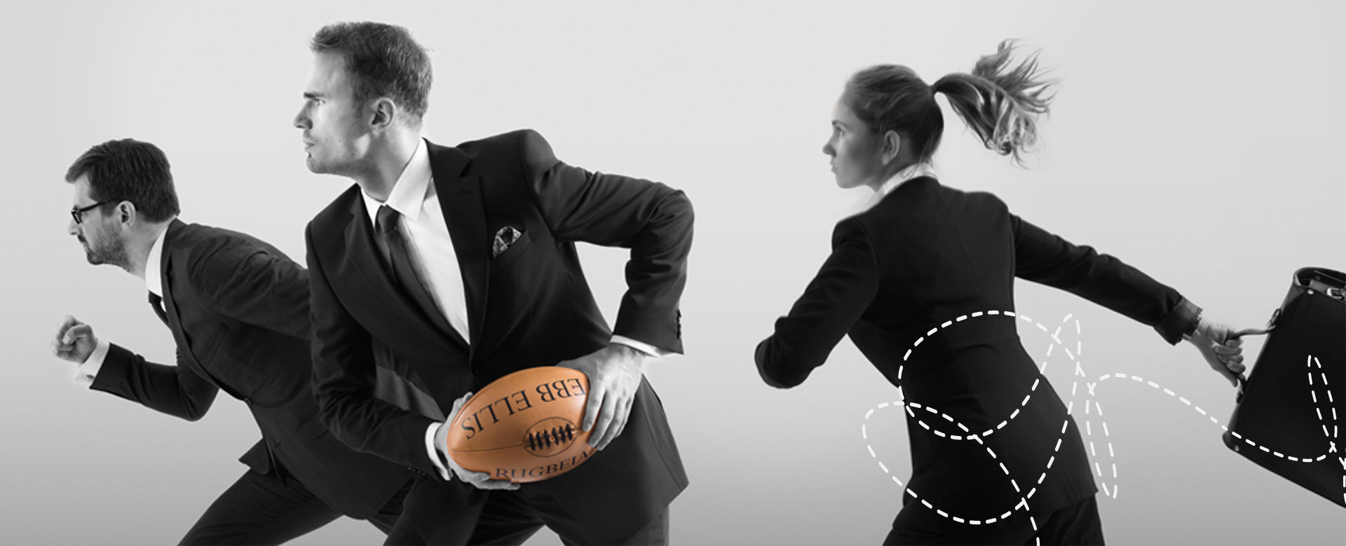 We decided to underline the hard, uncompromised nature of the office by combining a classic representation of a lawyer with symbolic attributes related to a hard sport, such as rugby – creating a unique image of SMM Legal, making it stand out from the competition.