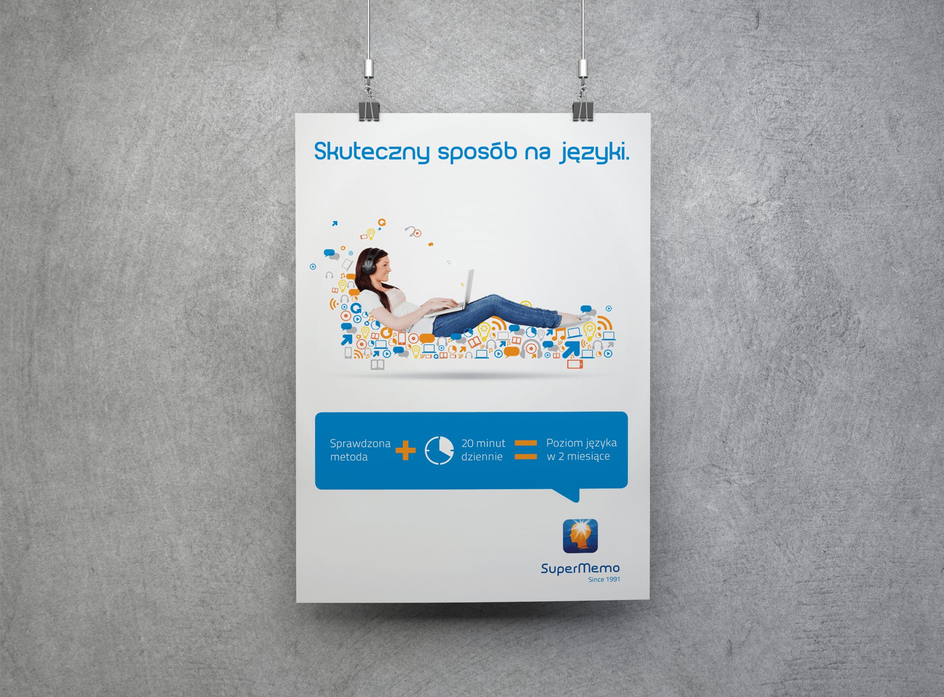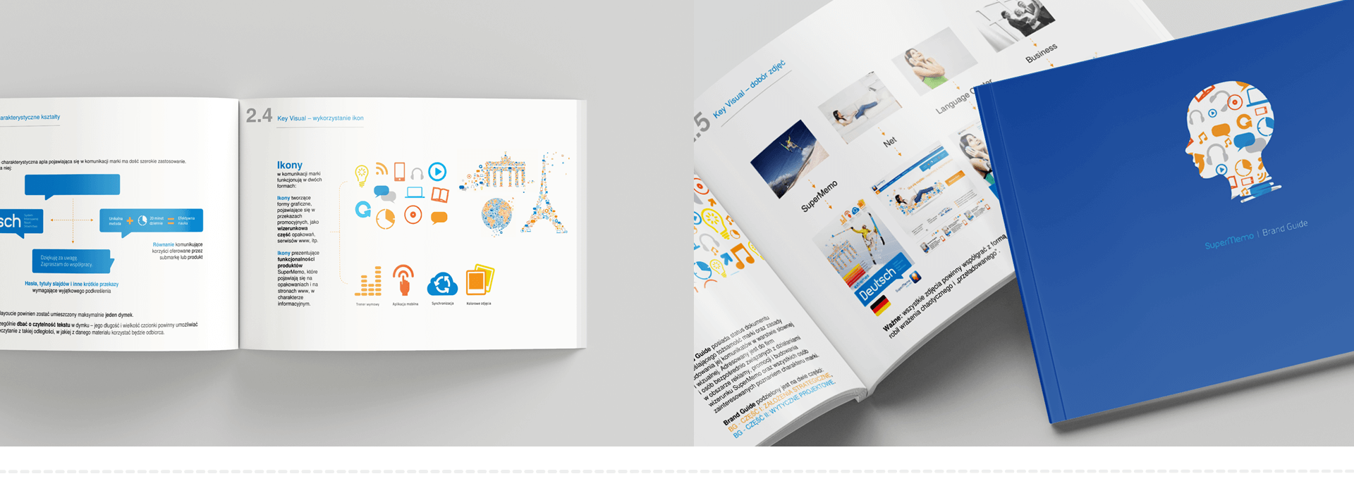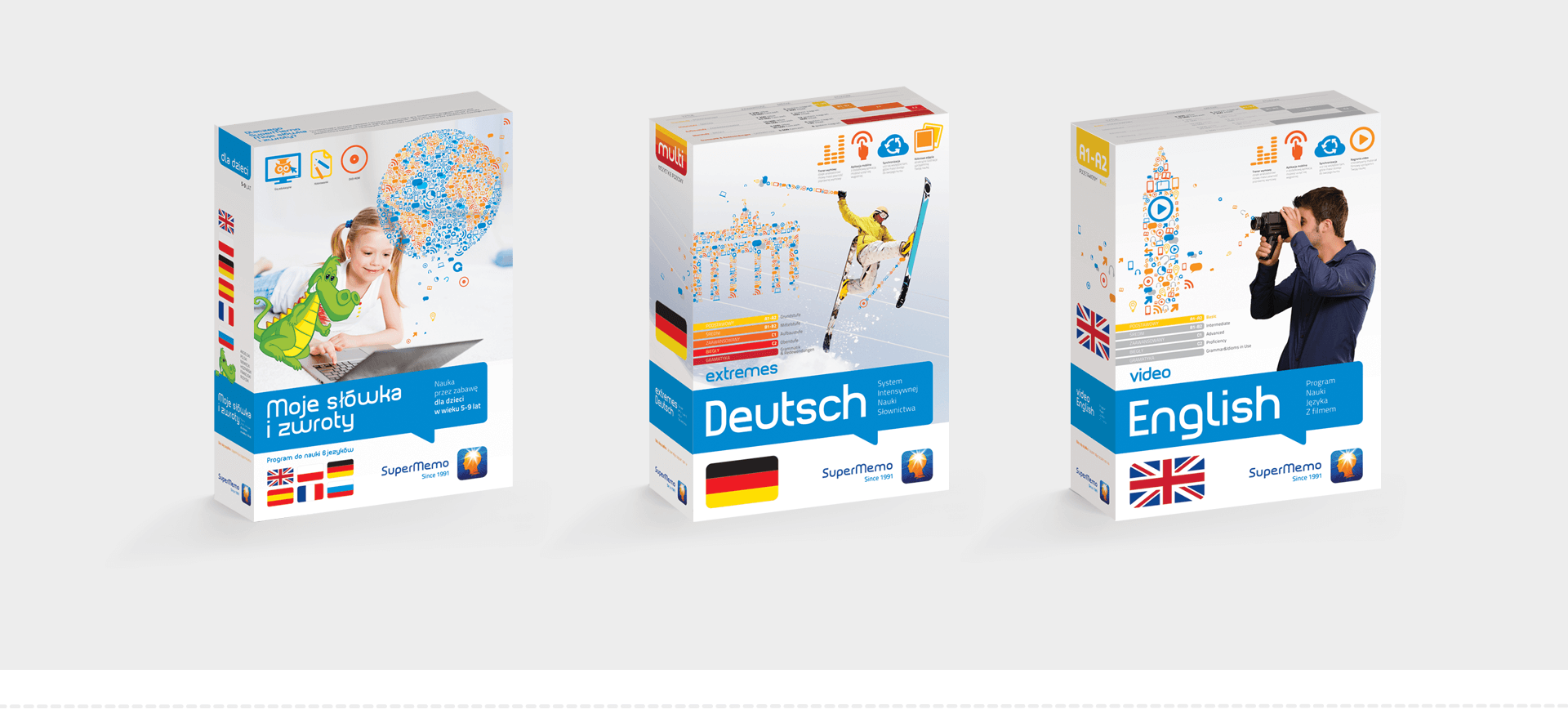 Supermemo is a brand and a symbol behind creation of an innovative language teaching method. It has successfully operated on the market for 25 years, selling box, digital (an online application and a website), as well as stationary (language schools) courses. Our task was to make a uniform identification system for a group of brands with an extended matrix, including development of a unique visual style.