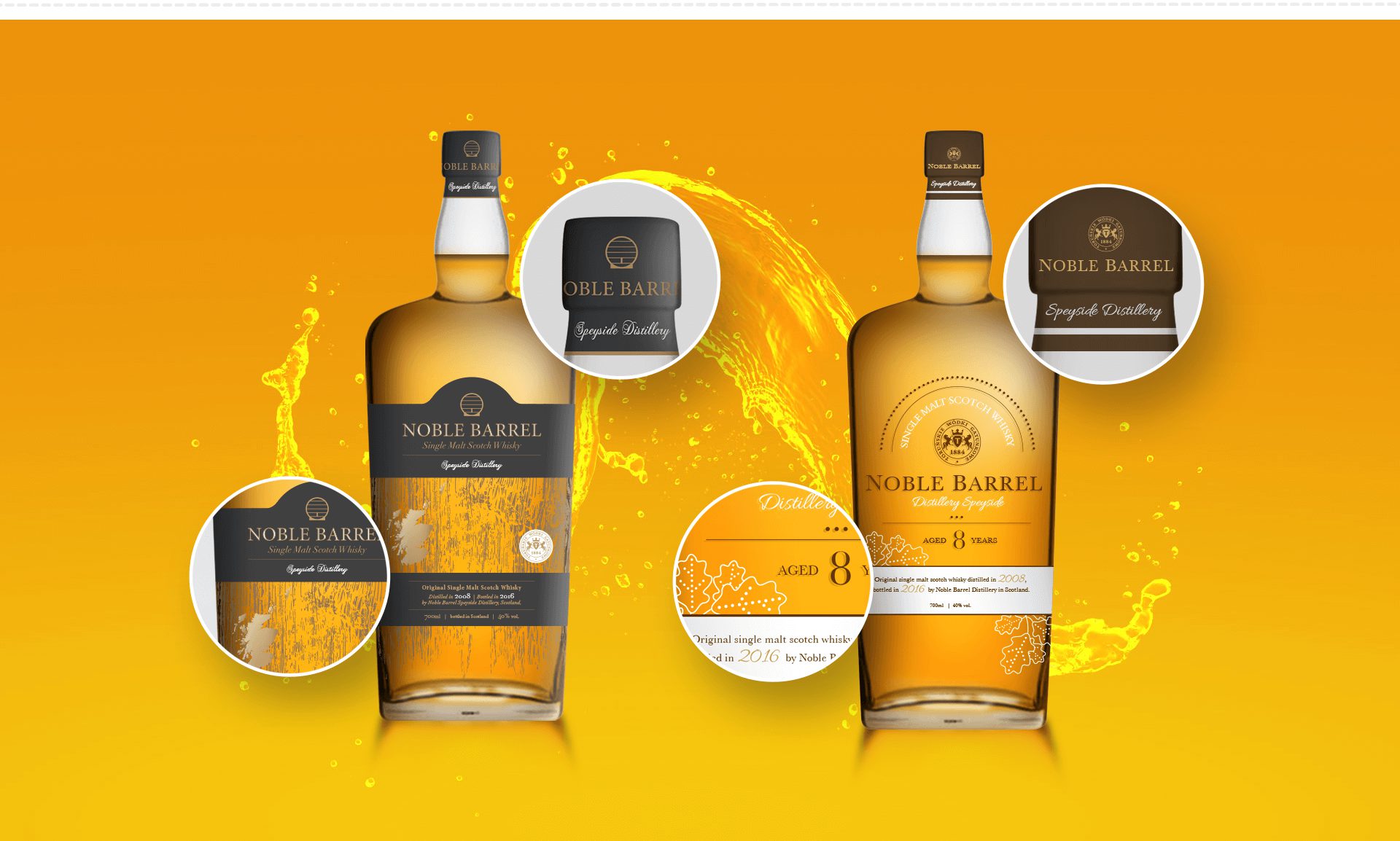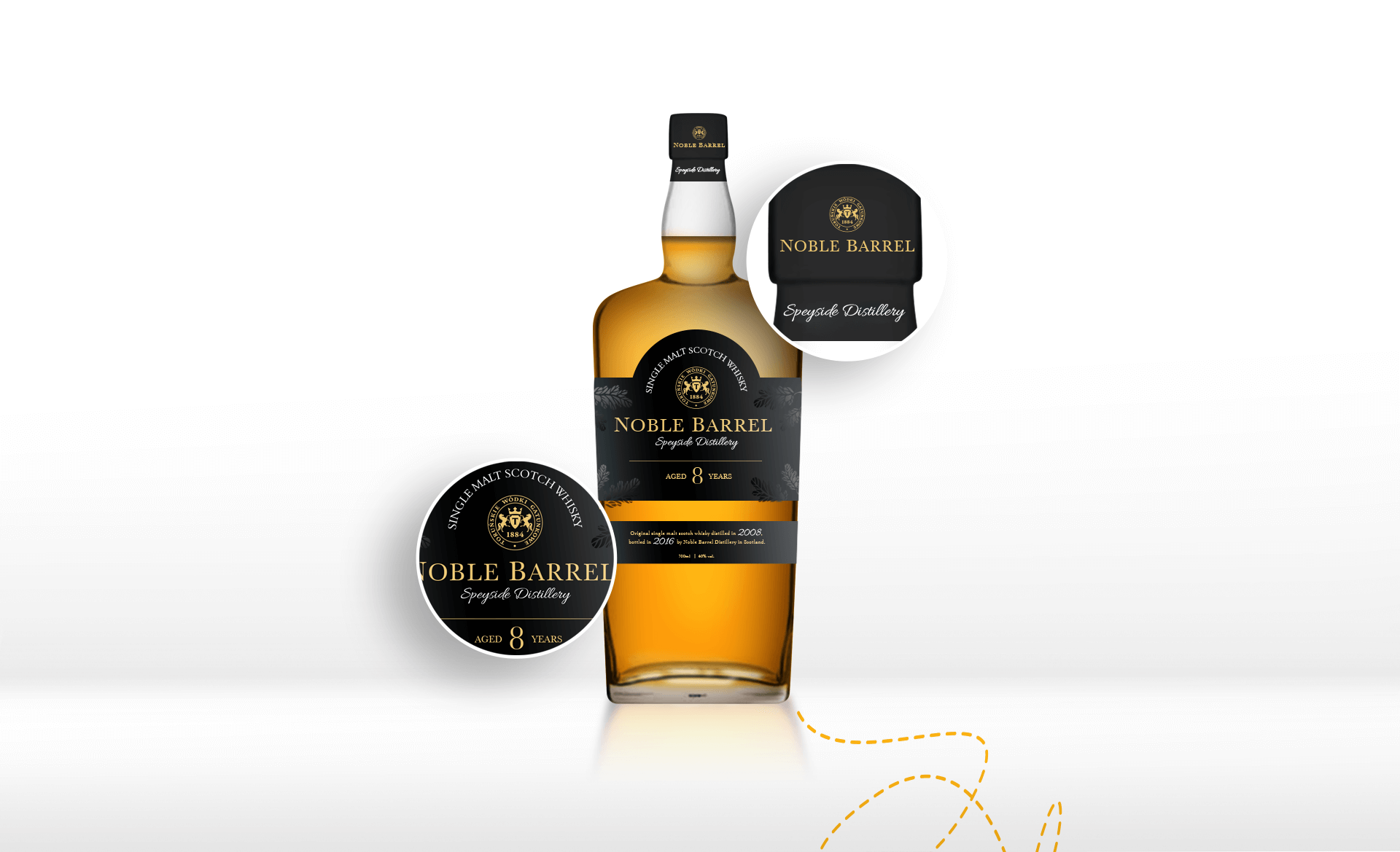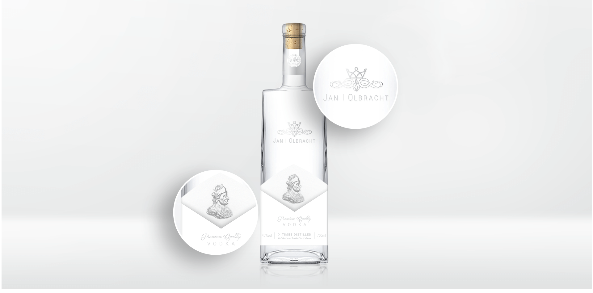 We designed several concept designs for the Premium Jan Olbracht vodka and the Noble Barell whiskey. We matched the designs of glass packagings and names selected by the client in our projects. The scope of works included comprehensive design preparation, packaging visualisation, including preparation for production.