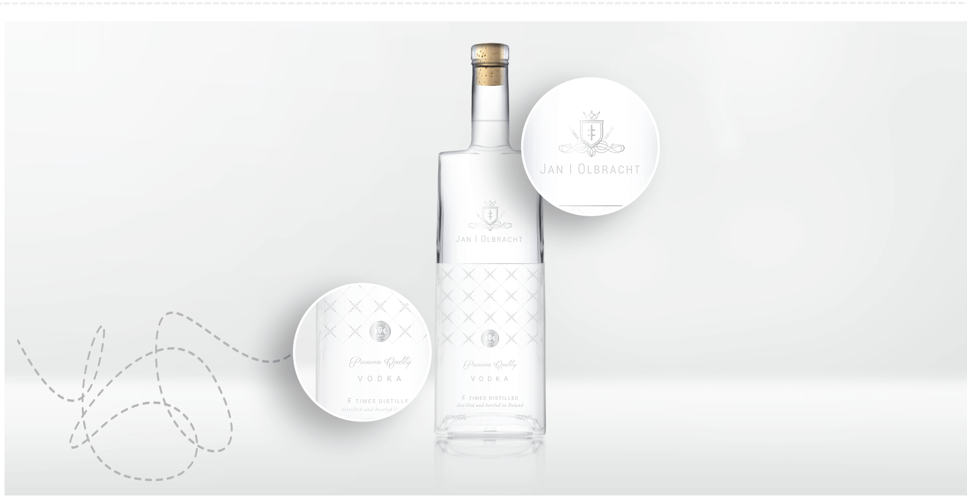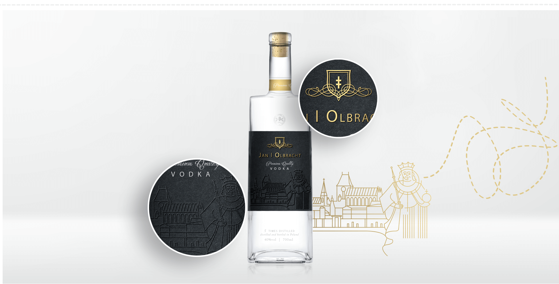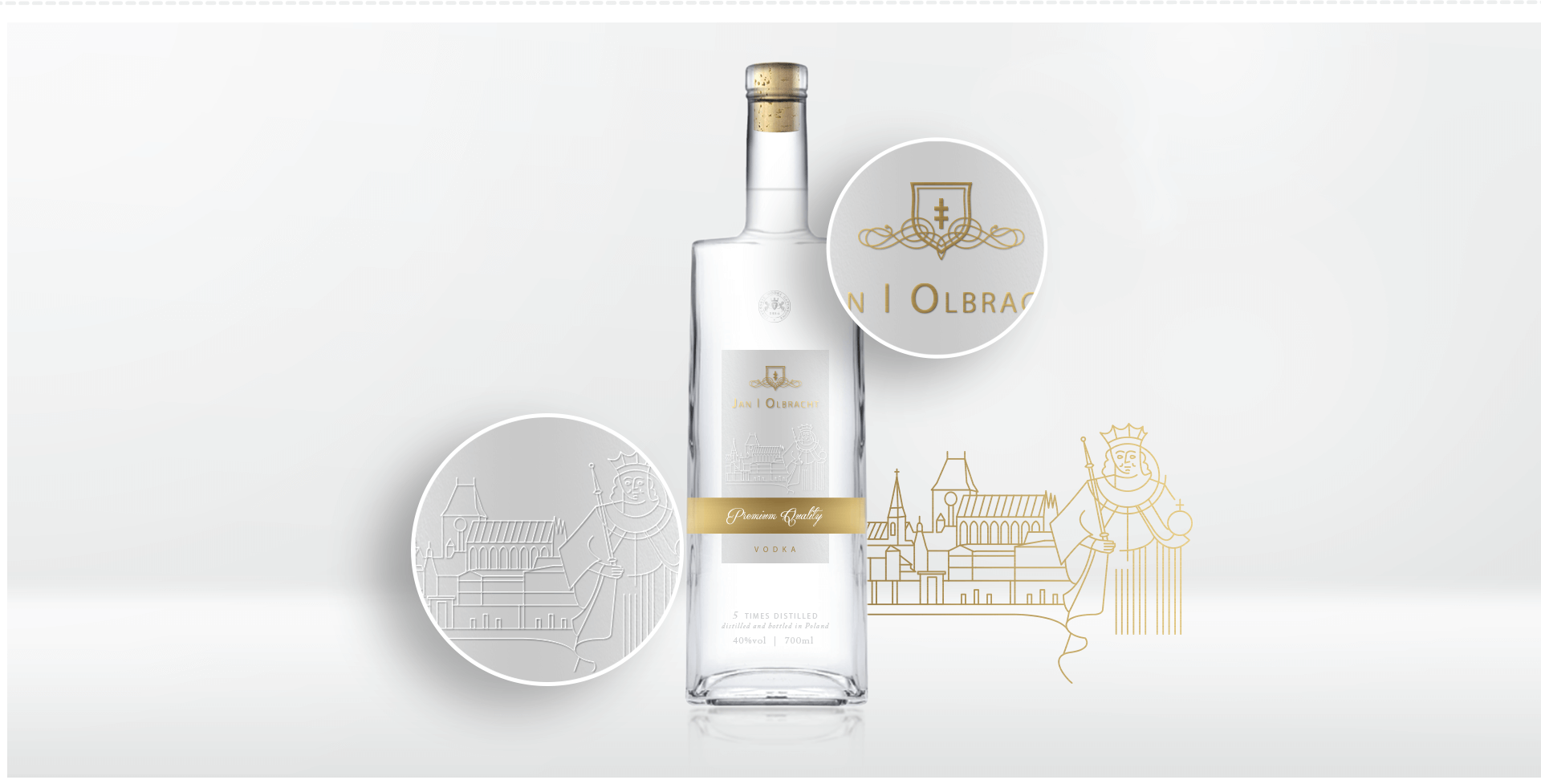 In one of the concepts, we proposed elements of ornaments sculpted in glass, related to the style of the age of king Jan Olbracht. The figure of the king is also derived from reliefs of the age, resulting in a style underlining the noble brand history.
